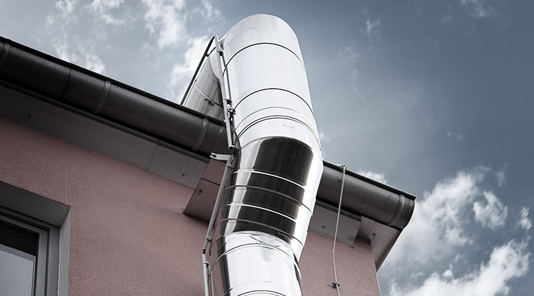 In der Regel werden die doppelwandigen Systeme von Poll an der Gebäudewand montiert. Durch das dünnwandige Innenrohr wird schnell die Temperatur der Rauchgase erreicht und sorgt so für eine geringe Kondensatbildung und eine hohe Zugbeständigkeit. Auch in Kupfer und RAL-Farben erhältlich.